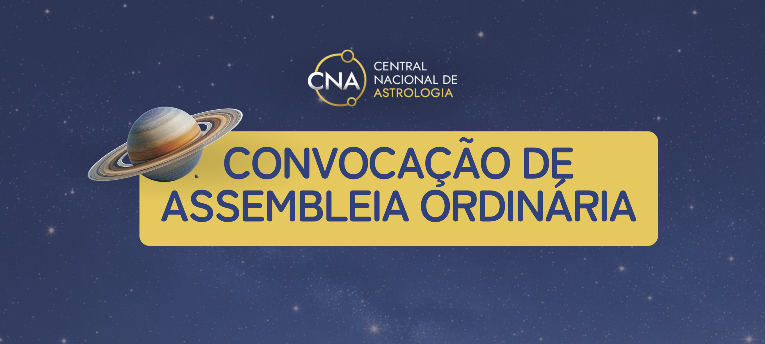 Em conformidade com o Estatuto em Vigor da CNA, ficam convocados todos os sócios da CNA – Central Nacional de Astrologia quites com a Tesouraria (ativos) a participarem da Assembleia Geral Ordinária – AGO, em primeira convocação às 13h00 e em segunda convocação às 13h30, no dia 18 de maio de 2026, ao vivo, via videoconferência, pelo link abaixo